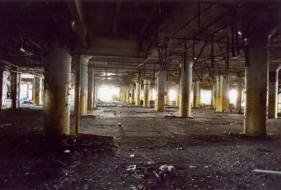 Most of the first floor, and most of the building, looks like this. Rounded cone columns are the standard in reinforced concrete factories.