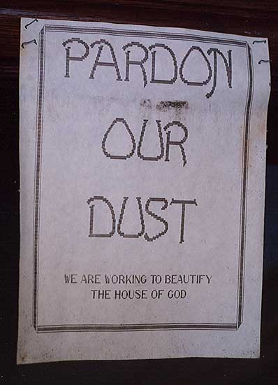 A sign by the entry that provided some hope that the church had a future.