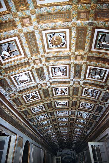 Peacock Alley takes its name from its colorful ceiling, also vandalized.